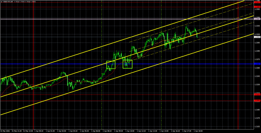 Торговые рекомендации и разбор сделок по GBP/USD на 2 апреля. Британский фунт следует за евро.